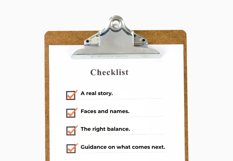 - Structuring the story so it highlights credibility and personality without sounding canned